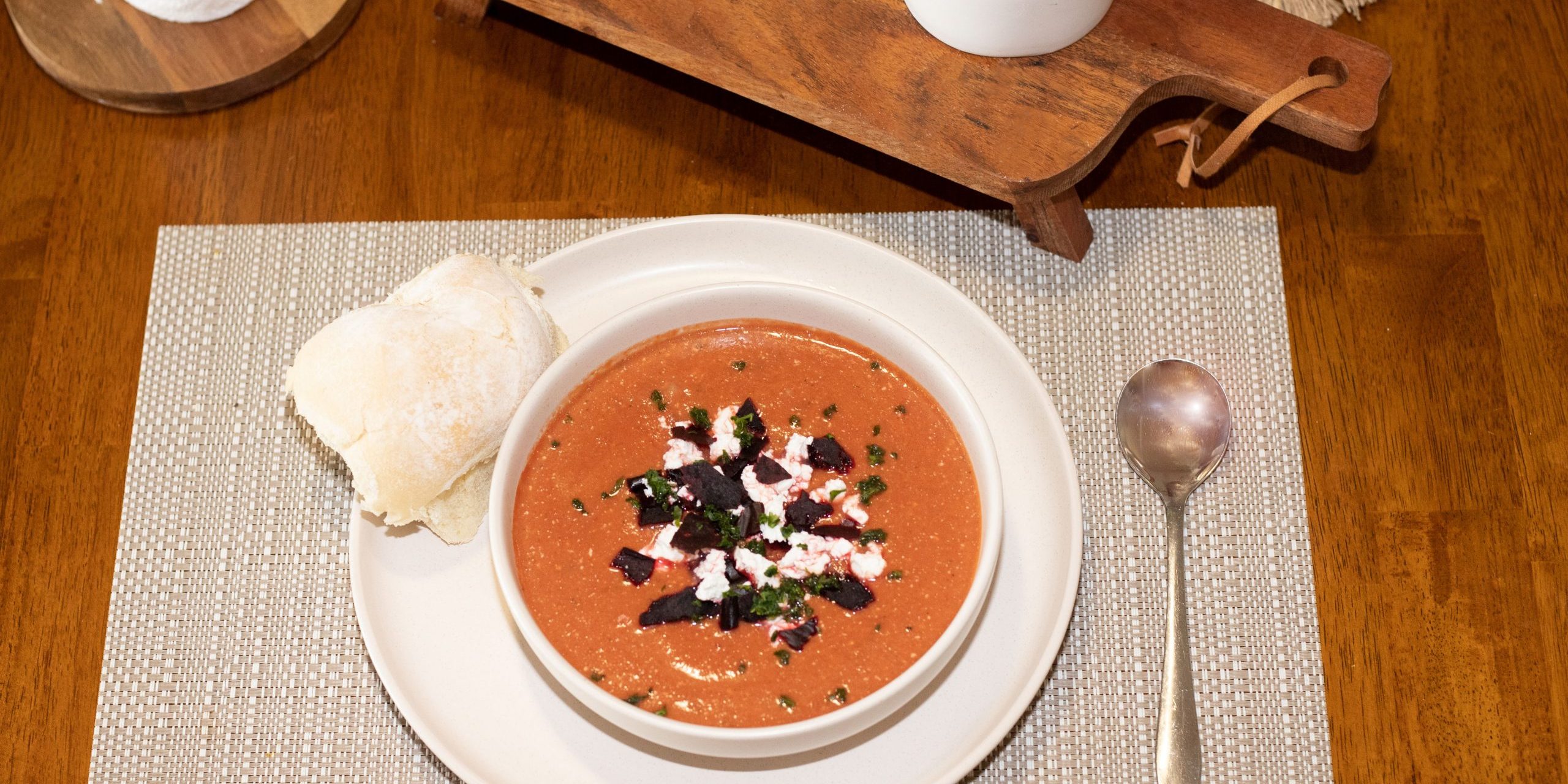 Beef Soup Roasted beetroot and vegetable soup topped with crumbled feta and thyme Project navigationPreviousPrevious project:Chicken Curry and VegetablesNextNext project:Sausage roll and vegetables
