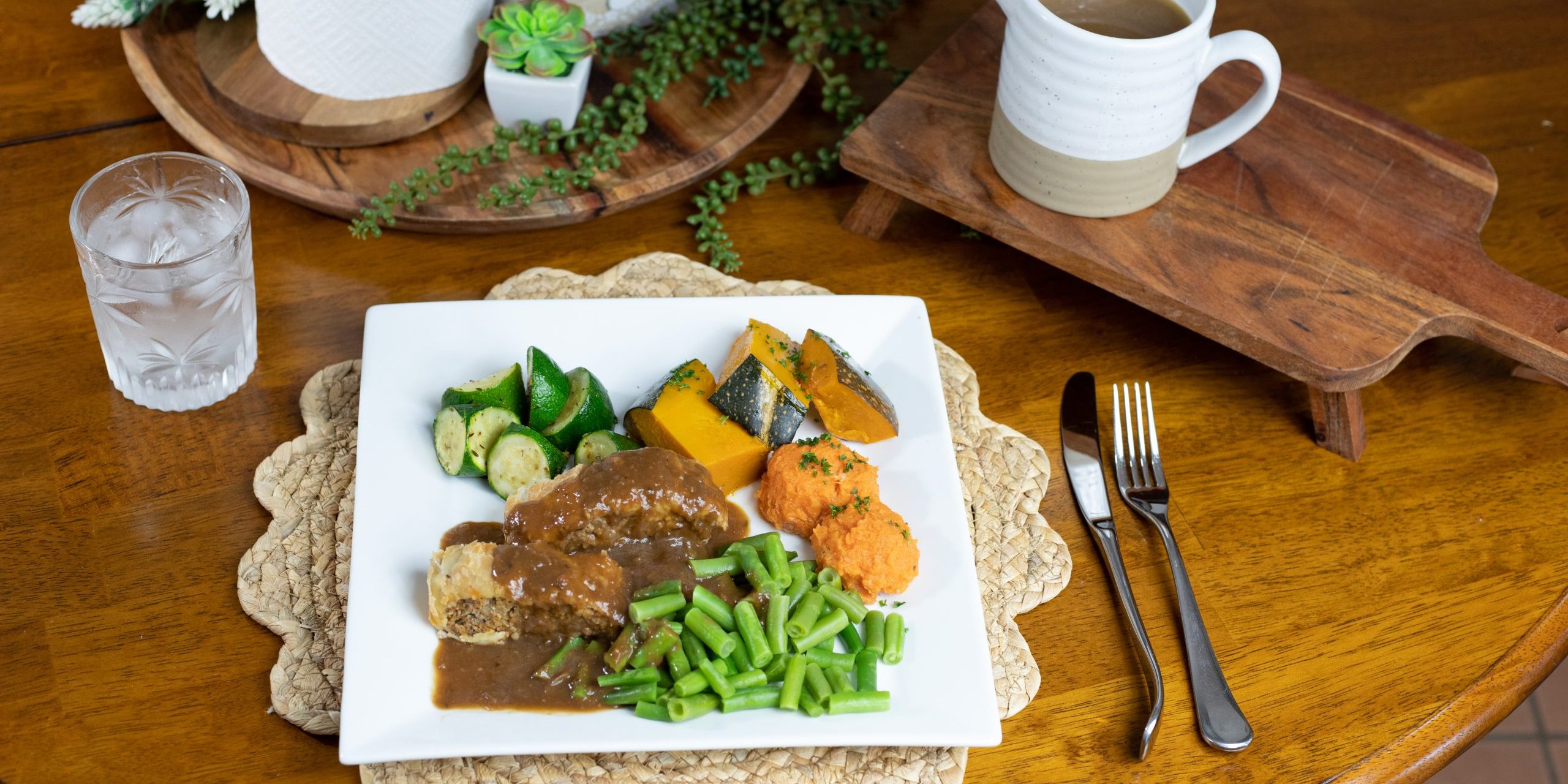 Flaky wholesome sausage roll with smooth sweet potato mash topped with a rich gravy and oven roasted vegetables Project navigationPreviousPrevious project:Roasted Beetroot and Vegetable Soup